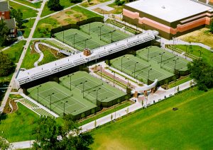 This tennis complex at Boise State University has elevated stadium seating constructed with precast and cast-in-place concrete. The structure is partially designed to retain the earth, which serve as ramps to the upper seating areas.