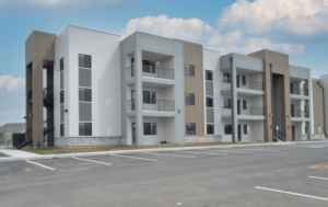 This project is a new three story, L-shaped housing project of approximately 68,000sf. The building utilizes low sloped pre-manufactured roof joists and engineered wood floor joists at the upper floors. The ground level is concrete slab on grade with conventional concrete foundations to support vertical and lateral loads.